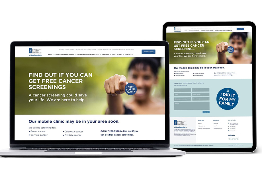 Through a partnership with Tarrant County, Moncrief Cancer Institute takes free cancer screenings into various underserved and underinsured communities in the Fort Worth area. Schaefer Advertising reached out for my creative help on a promotional campaign that could be used across multiple traditional media assets in English,Spanish, Vietnamese and Arabic. This campaign won Silver at the 41st Annual Healthcare Advertising Awards.